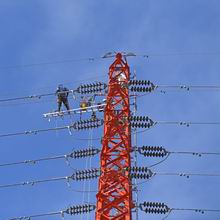 当社は、電力会社の架空送電設備を建設しており、送電線の基礎工事、鉄塔組立工事、架線工事、メンテナンス工事全般を行っています。